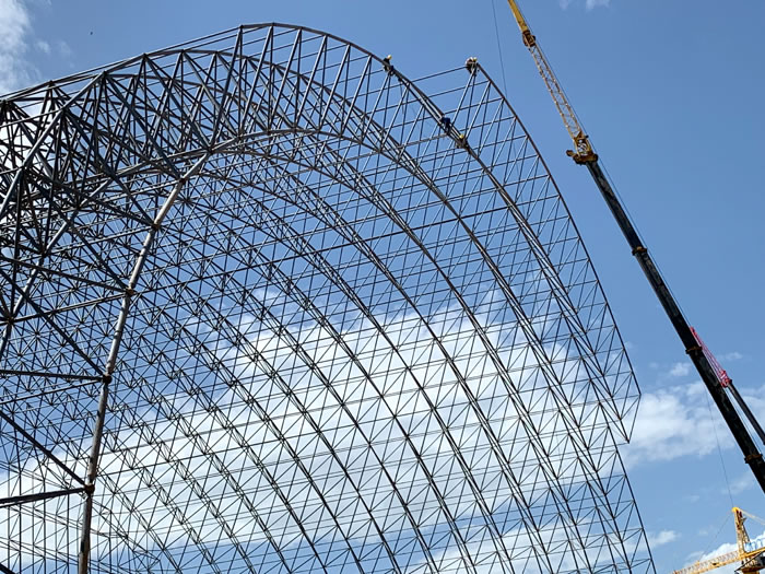 (2)网架加工前应对现场尺寸进行复测,确认无误后方可进行加工、安装;网架制作、运输、安装应遵守《空间网格结构技术规程》JGJ7-2010、《钢网架乐陵螺栓球节点》JG/T 10-2009、《钢网架乐陵螺栓球节点用高强度螺栓》 GB/T 16939-2016、《乐陵钢结构乐陵工程乐陵施工规范》 GB50755-2012、《乐陵钢结构乐陵工程乐陵施工质量验收标准》 GB50205-2020。